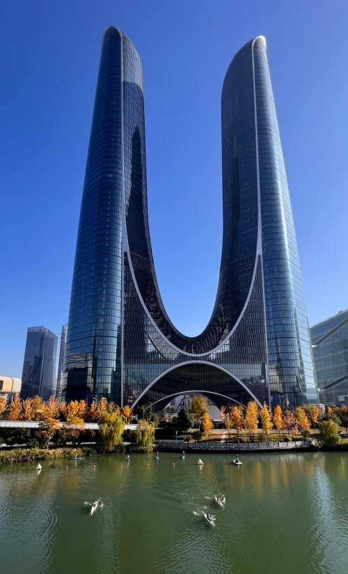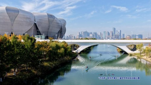 本届赛事选址七甲河,该河道位于亚运主题公园核心区。河畔汇聚了杭州奥体中心体育场(大莲花)、杭州奥体中心网球中心(小莲花)、杭州奥体中心游泳馆‌、杭州奥体中心体育馆众多亚运场馆,更是背靠杭州之门“杭州世纪中心”,形成“水岸地标”的独特景观。河水清澈如镜,两岸绿树成荫,公园内步道、休憩区及餐饮设施一应俱全,为选手提供了优质竞技环境。比赛当日晴空万里,阳光洒落水面,波光粼粼的河道与远处地标建筑相映成趣,令参赛运动员赞叹不已。是开展群众水上运动的绝佳场所。